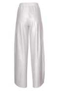 Calça de cintura subida e elástica ajustável com cordões. Perna larga. Aplicação de fita brilhante nas laterais.
