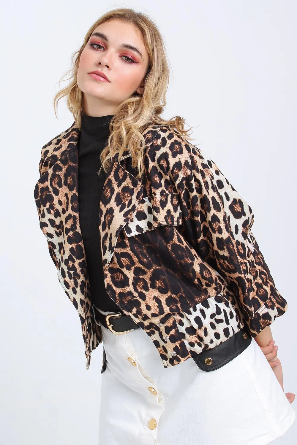 Casaco Cropped padrão leopardo